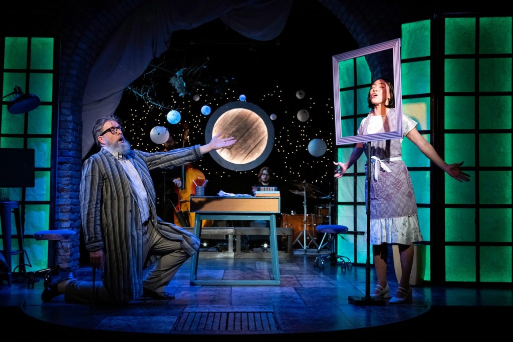 Directed and designed by Joel Sass, the production has that Open Eye Theatre aesthetic I love. Sass has a knack for offbeat material and feels like a perfect match here. Music direction is by Wesley Frye, and his quartet provides exactly the right sound for the venue. As an added bonus, they entertain the audience with 15–20 minutes of preshow music. Remember when Theater Latté Da used to do that for shows like Once and Hedwig?