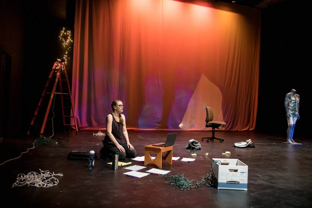 First up was Channel about a lighting designer working alone at night in an old theatre. The Designer is played by Elizabeth Efteland, I think, I’m going off of info I found from it’s run at the Minnesota Fringe Festival*. She is under pressure to solve certain lighting issues the show is having but is also trying to care for her mother who has some sort of health issue and needs her. She tries to juggle all of these things including talking to her old roommate who has a job for her in Chicago if she can get away and her sister who leaves her to deal with their mother. Meanwhile, the house audio keeps coming on and the lights keep going out. I want to say, and then terror ensues but unfortunately, it’s more like tedium ensues. Channel felt like an SNL skit that they didn’t know how to start, the inverse of their usual trouble. It ends rather well, though the resolution, which I followed, was really in need of some clarity. This felt like a 30 minute show stretched to an hour. There were also a lot of decisions that took one out of the show. I don’t know how the phones these characters have operate, but it isn’t like any phone I’ve ever used in real life. She is struggling to get her work done and get home to her mother and I wanted to tell her to stay off her phone and concentrate. It’s hard to have sympathy for a character who is feeling overwhelmed by the amount of work to be done, yet seems to spend all of her time on her phone. When it gets creepy, it is well done. Lighting and sound effects are very effective. And Efteland is a good performer, she does her best to keep us interested, her performance and her emotions ring true. I just wish she had a better script to work with. This was the weak link of this years festival, but to be fair it’s a strong year.