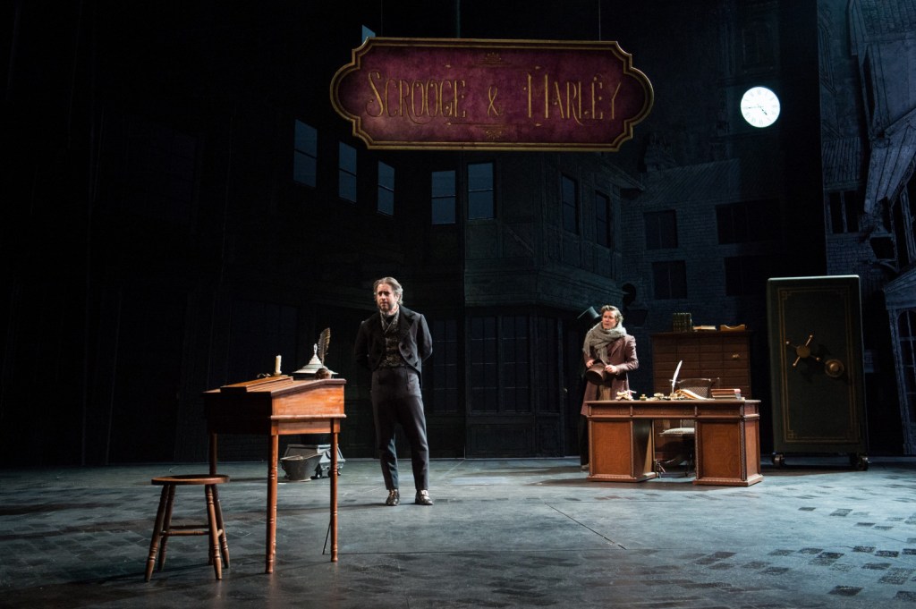 A Christmas Carol was first published as a Novella in 1843, in 1844 the first stage adaptations appeared. It tells the story of a miserly old business man Ebenezer Scrooge, who is visited on Christmas Eve by three ghosts sent by his old business partner Jacob Marley. The Ghosts are spirits of different times. The first is the Ghost of Christmas Past and shows him scenes from his past. Second the Ghost of Christmas Present, which gives him a look into the lives of those celebrating Christmas that year, including his nephew Fred, and the family of his clerk, Bob Cratchit. Lastly the Ghost of Christmas Yet to Come, wherein he sees his own future and people’s responses to it. The point of these visitations sent to Scrooge by Marley is so that he might learn the error of his ways and change while there is still time. Scrooge of course comes to realize how he changed over time and of the fruitlessness of such a selfish existence. By the end of the play he has found the spirit of Christmas and no longers thinks of it as a humbug. What this new adaptation does that is different from its predecessor is early on Scrooge’s desire to change. Not simply from be frightened by the ghosts, but we sense very quickly he has seen the errors of his ways and is trying to find the path to redemption. Rather than being frightened not to change, we see a Scrooge who is seeking change. This shift in focus is a real change from previous versions, it doesn’t alter the plot but it does make Scrooge more of an active participant in his own redemption. It is a positive message and fits well with Dickens themes and message.