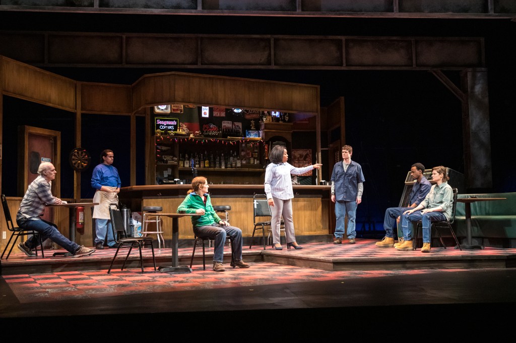 Lynn Nottage, dead brilliant script for all of the reasons I go into above. Director Tamilla Woodard whose guidance allowed all of these themes to emerge in a naturalistic way, it’s amazing how many different issues and ideas all find their way clearly unto the stage, always finding their own space to come into focus and without feeling like a pot that everything was thrown into with all the flavors fighting to be tasted. Scenic Designer Mikiko Suzuki MacAdams who created a local that felt like a thousand small bars in a thousand different towns across America. We’ve all been in them and that helped us establish a familiarity right from the beginning, as soon as the bar set is revealed we collectively have this flash of “I’ve been there”. Aaron Preusse as the Fight Director stages one of the most realistic fights I’ve seen on a stage. Generally they seem to be very fake and barely physical, for the obvious reason that it’s live and these are actors not stunt people, but this one felt close to real. The cast…. There isn’t a weak member of this ensemble so I think rather than try and pick favorites I’m going to list them all below. Praise is due as well to the unsung folks who helped the show arrive at this amazing cast, Jennifer Liestman the Resident Casting Director and McCorkle Casting, Ltd who is the New York Casting consultant. It’s not very often that I see a show with more than say five or six actors that there isn’t one performance that maybe isn’t quite as good as the others. This is one of those casts where there simply is no weak link, period.