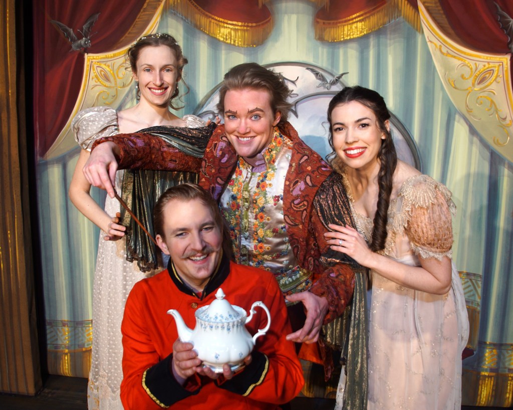 What is always amazing about the GSVLOC productions is the size of the cast, there are over 30 performers in The Sorcerer and the Howard Conn Fine Arts Center is not a large theater or stage. Somehow they make it work. Most of the performers are villagers and aristocrats and the sound they all make together is superb. Music Director Randal A. Buikema is certainly an asset to the company, both the vocals of the cast and the musical performance of the orchestra are wonderful. The performance I saw, the role of John Wellington Wells the Sorcerer, was played by the cover Sam Vinitsky, he was good in the role, so no worries if you attend and he’s on for Sifryn Oberon who is scheduled to perform the role at all other performances. Seth Tychon Steidl plays Alexis, he has a real talent for G&S, a wonderful voice, and a gift for the comical. Other highlights of the cast were Anna Maher, he played Aline at this performance. J.R. Andrews as Mrs. Partlet is a hoot and Kaoru Shoji as her daughter Constance had possibly the best voice of the female cast.