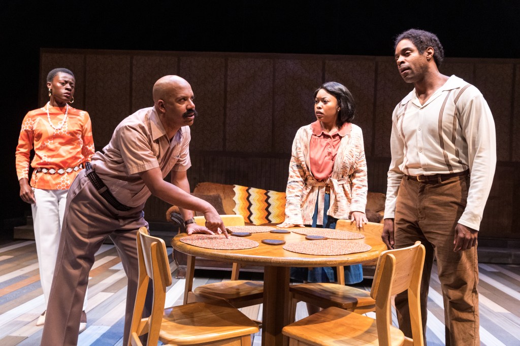 The first play we saw was The Winter’s Tale, I enjoyed both Shakespeare plays almost equally, which is to say, they were both really well done. But, if forced I’d give the edge to The Winter’s Tale. Probably because I was less familiar with it, as it’s been eight years since I saw it, compared to two days for As You Like It. The Winter’s Tale is considered by some to be one of Shakespeare’s “Problem Plays” due to its tonal shift from a rather dark drama in the opening acts to a light hearted comedy with a happy ending. It’s also contains one of the most famous stage directions in all of theater [Exit, pursued by a bear]. Which brings up one of the shining elements of this production, the Sound Design by Jeff Polunas, the bear attack being one example of a really effective soundscape. Performance wise De’Onna Prince in the dual roles of Paulina and Old Shepherd was a revelation. Trying to be the voice of reason and passionately pleading in the first acts as Paulina, she was utterly captivating, and then very entertaining in the second half as the Old Shepherd. Emily Fury Daly as Queen Hermione in the opening scene I wasn’t connecting with, but when she comes to be judged, she quite assuredly had everyone’s attention and that slight disconnect in the opening scene made this moment doubly powerful. Likewise, in the second half of the play as The Clown, she is thoroughly entertaining and her performance draws a lot of laughs from the audience and well deservedly.