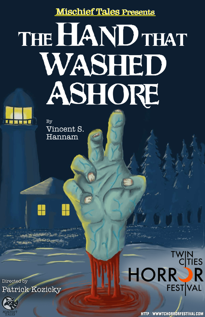 The Hand That Washed Ashore falls into the category of horror comedy, but more specifically horror comedy along the lines of Evil Dead II. It’s very serious but has elements of an almost slapstick style of comedy. It’s a tricky tonal balancing act but one that Playwright Vincent S. Hannam and Director Patrick Kozicky nail. A construction crew is trying to clear an island of storm damage on Lake Superior in Northern Minnesota before it opens to the public. When they find a chest on the shore, against the adamant pleas of one of the crew, they open it and must face the wrath of a vengeful severed hand. When you walk into the theater you’ll know immediately by the tarp on the floor that this ones going to get a little bloody. It builds slowly but when things start happening, they happen quickly. Once the chest is opened things get crazy fun. A solid cast including some double duty from Derek Dirlam as the foreman and later as the dismembered hand make this one to see.