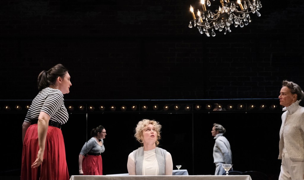 In a world premiere co-production with the Jungle Theater, The Moving Company (MOCO) has created an adaptation of the Moliere’s The Misanthrope that jettisens characters and plot points to examine the ideas at the heart of the 17th century classic. With design elements ripe for interpretation by the audience it’s both serious and comedic, confounding and illuminating. This is a thinking person’s play, not your standard light entertainment. So, while not to everyone’s taste perhaps, at just over 90 minutes I’d recommend it to those who are intimidated by the “artier” sounding productions. I think you’ll find it accessible even if it feels at times a little inscrutable. A little inscrutability can lead to some interesting discussions and analysis. The fantastic cast keep you enthralled and carry you through any sense that you might be in over your head. My advice is to go with it, don’t get hung up on what everything everyone is saying means, for what your beliefs are is likely some combination of the various characters and what they seem to represent.