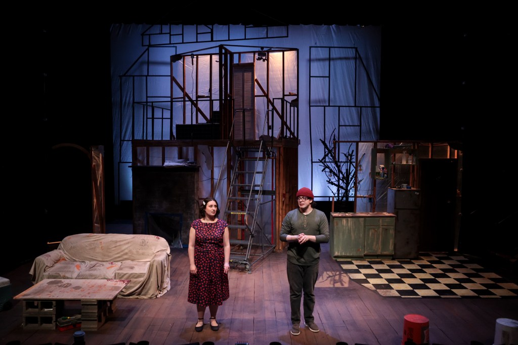 The set design by Cory Skold is impressive, it looks like a multistoried construction site, with painters plastic hanging all over and walls exposed down to their studs. The whole thing is pulled together by the lighting and sound design by Shannon Elliott, there are some cues that really help to sell the story as it unfolds. The production is directed by Callie Aho who also services as the Intimacy Director. Aho’s handling of that garden party scene shows a talent for making the fast paced and chaotic still surprisingly clear in terms of who’s who when there are literally 11 characters speaking at once being played by two actors. Radiant Vermin runs through March 24th at Lyric Arts in Anoka, don’t let the drive stop you it’s really not that far and this show is so very worth your time. For more information and to purchase tickets go to https://www.lyricarts.org/radiant-vermin