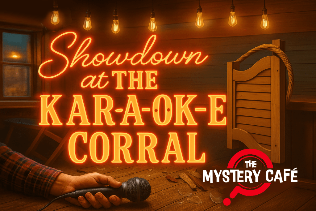 It was my fifth case with The Mystery Café, and the writing was on the email: this would be my last. After its 38th season, the Café is closing down. The head of the agency, Brian Kelly, cites rising food costs as one of the motives, though I just heard President Trump say grocery prices are lower than they’ve ever been since the Great Depression, so who knows what to believe. One thing was certain: a crime was going to be committed at the Kar-a-OK-e Corral, and I needed to be there to help find the murderer.