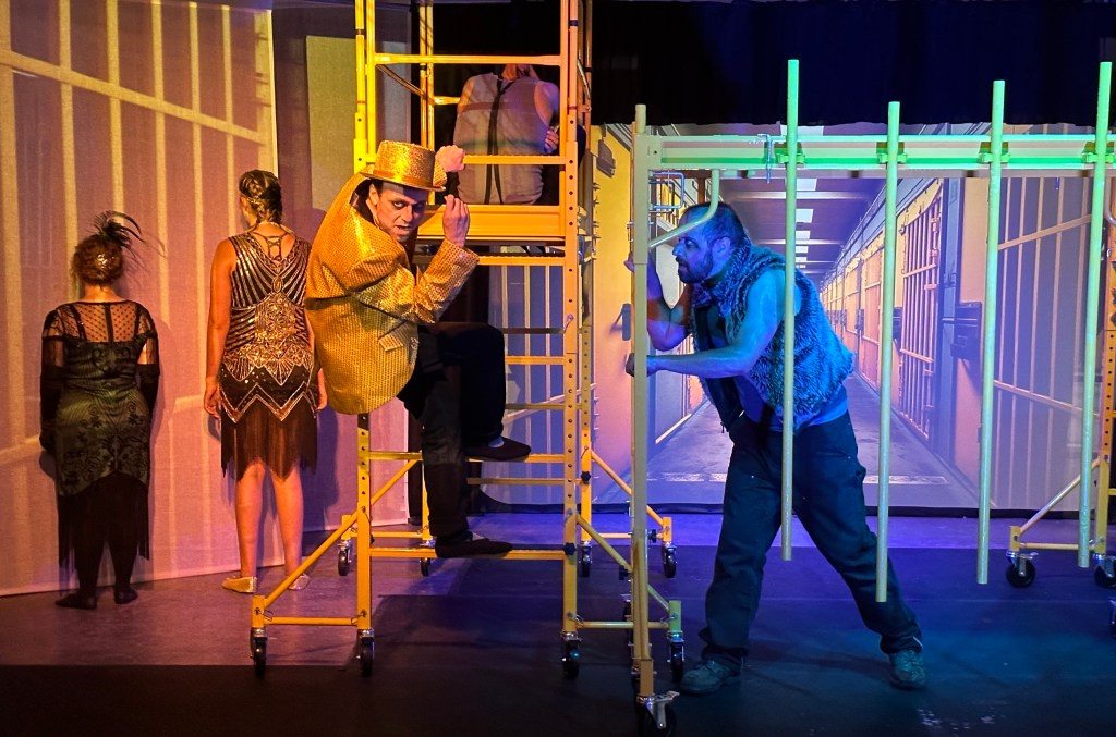 Director Kym Longhi uses movement from the cast almost as interpretive dance. As they move throughout the space which is designed by Jim Peitzman using three moveable scaffolding rigs and projections on three flats. It’s a simple but extremely effective look that works perfectly with the casts movements and styled performances. The Lighting Designer Paul Epton’s work perfectly compliments the projections helping to create the desired environments and moods. Equally impressive is the sound design by Micah Kopecky, which envelopes us deep inside the center of the ship or transports us into the past when ships were made of wood, and sailors sailed with the stars over their heads to in great hot steel engine rooms. Longhi has brought together all of the elements into what is a cohesive and unified production, none of it feels real, but all of it works.