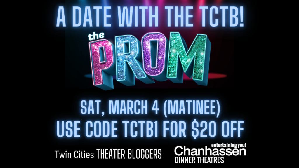 I am also a member of the Twin Cities Theater Bloggers, you can read roundups of shows by my colleagues and I on facebook @TwinCitiesTheaterBloggers. Follow that group, It’s a great way to see reviews for shows I don’t get to or to get another bloggers take on one. We have some exciting things in the works for 2023 for the TCTB and our readers, follows us to be the first to know about those happenings. Including our Prom Date with the TCTB!! see below for details. Click on this link and select the March 4th matinee performance https://bit.ly/PromDateWithTCTB
