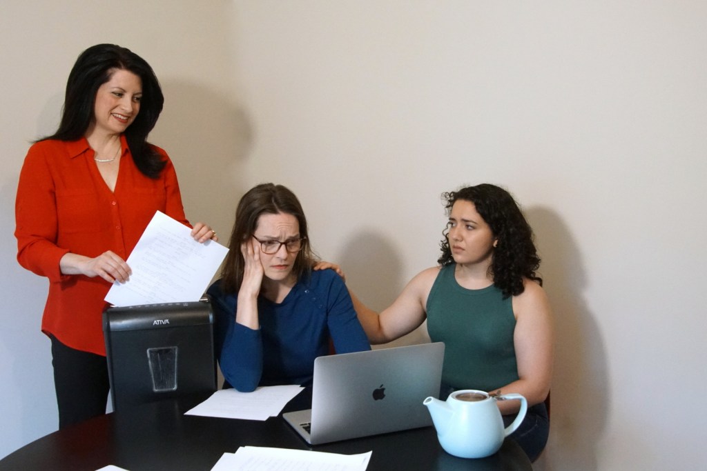 Rewrites by Phil Holt takes a surreal view of how a playwright creates by imagining that she can actually call and invite her characters over to help her through her writer’s block. But then who’s the writer? As her character’s point out, they cannot tell her what happens until she writes what happens. I love a work in any medium that takes on the challenge of trying to understand and share the creative process. The show explores why we want to create taking loving stabs at the pomposity that can motivate those intentions or that one might use to try and justify their success. It’s a clever script full of surprises and humor that I have no intention of spoiling. The cast is excellent with great comic timing but, also an ability to change the mood and tone at a moments notice to something more real.