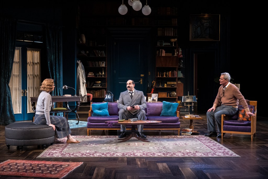 Hannah Steblay also plays multiple roles, but unlike the clowns, she generally inhabits characters with longer arcs. She portrays both Annabella Schmidt, the spy who passes her mission to Hannay with her dying breath, and Pamela, the woman Hannay finds himself handcuffed to, resulting in an inspired and delightfully physical routine as the pair attempt to navigate a gate together. Hannay himself is played with matinee idol poise and dashing charm by Grant Henderson, who nicely captures the easy charisma of Robert Donat in the original Hitchcock film. It’s excellent casting all around.