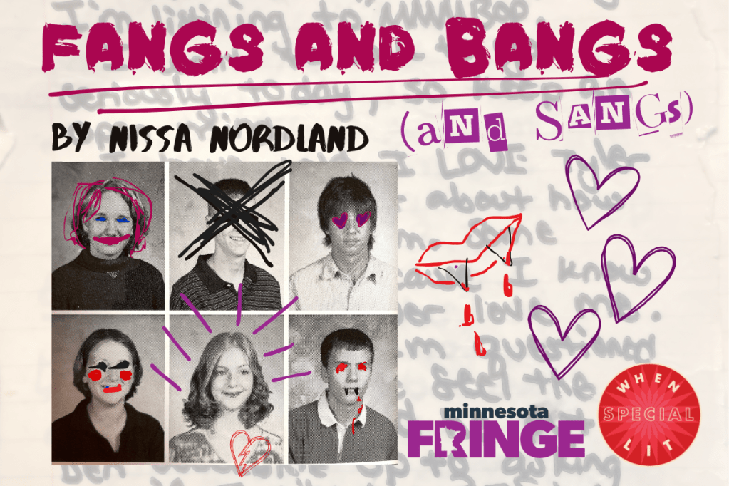 Fangs and Bangs (and Sangs) is equal parts funny and endearing. Nordland has been a Stages of MN favorite along with her “current” Plus one since I saw them both in Nordland’s Twin Cities Horror Festival show, Incarnate. This is one of those shows that will be different every night and makes me wish there were only 40 shows in the festival so I could see them all and this one for all five performances. The format is that Nordland shares her journal entries and poems she wrote in Junior High and High School. A lot of us did those things, but how many would have the guts to share them now with an audience of strangers. She also wrote vampire romantic fiction which she has a rotating crew of guest actors perform from cold readings. Peppered throughout are songs that mattered to her during those years, but they are not played via the sound system they are performed as well by a rotating group of guest musicians, of which Nordland is one and also sings some of the songs. I had the honor of being present at Executive Director of the Minnesota Fringe Festival made her Fringe performance debut on Violin! This is really an especially sweet and funny show that is led by that little pixie with the twinkle in her eye who shares her teenage soul with the audience, understanding that we love her and are laughing with her, not at her. I’ve looked at the page and guarantee that the rotating artists pool doesn’t have a weak link, so it’s going to be great whenever your slot it into your schedule. For more info and to get tickets go to this shows page here https://minnesotafringe.org/shows/2025/fangs-and-bangs-and-sangs-