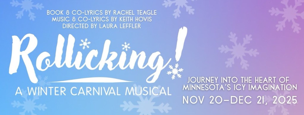 Rollicking! A Winter Carnival Musical at History Theatre thru 12/21 https://www.historytheatre.com/2025-2026/rollicking-winter-carnival-musical A Christmas in ochopee from New Native Theatre runs from 12/3 thru 12/21 https://www.newnativetheatre.org/a-ch… A Christmas Carol…More or Less runs from 11/28 thru 12/28 at Yellow Tree Theatre https://yellowtreetheatre.com/christm… A Nice Family Christmas at Lyric Arts Through 12/21 https://www.lyricarts.org/nice-family-christmas A Double Feature of Free Pirate Musicals celebrating Fortune’s Fool Theatre at the Hive Collaborative through 12/21 https://fortunesfooltheatre.org/what-were-doing